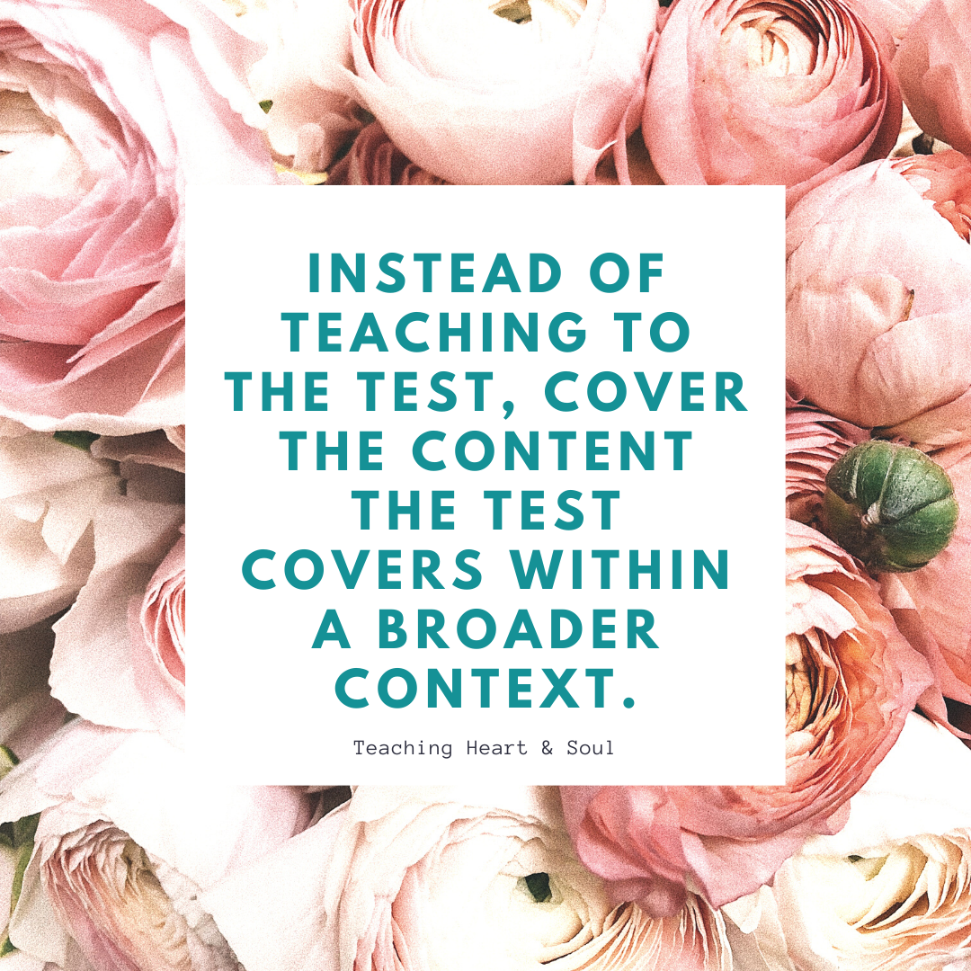 Instead of teaching to the test, cover the content the test covers within a broader context.